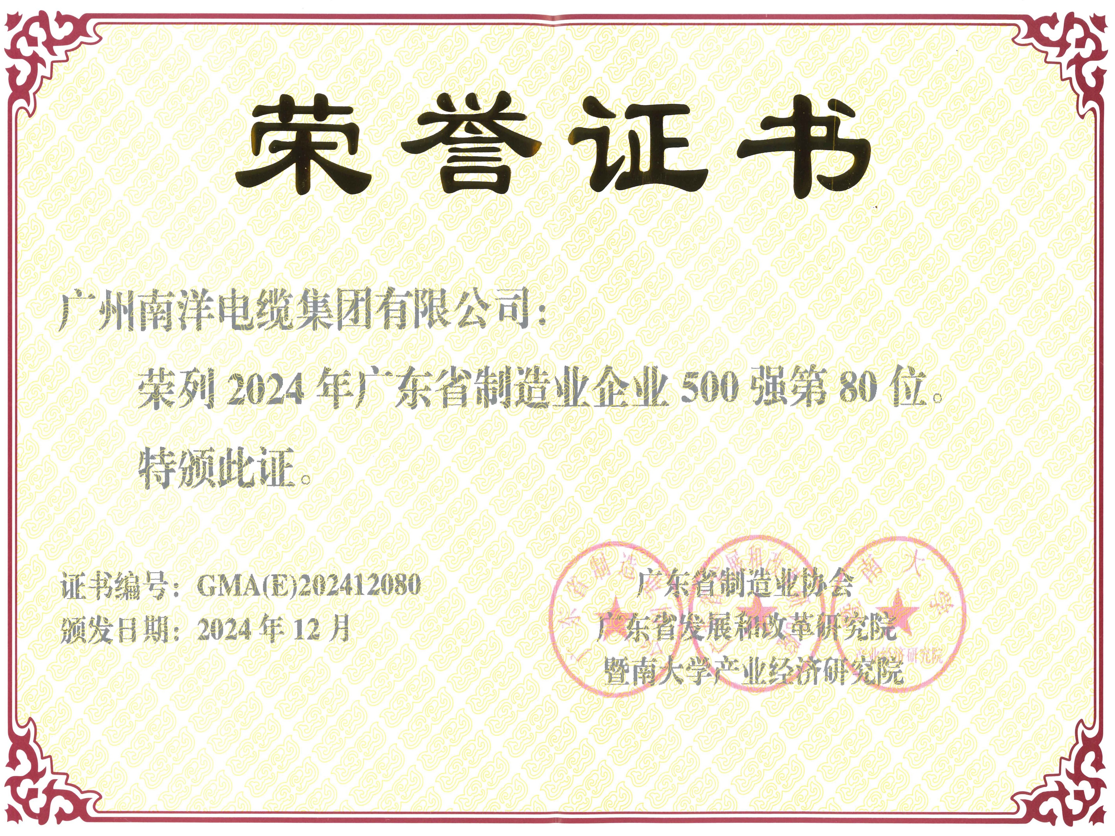 廣東線纜行業(yè)最具競爭力企業(yè)第一名、中國線纜行業(yè)最具競爭力企業(yè)20強(qiáng)、華南地區(qū)電線電纜研發(fā)制造龍頭企業(yè)